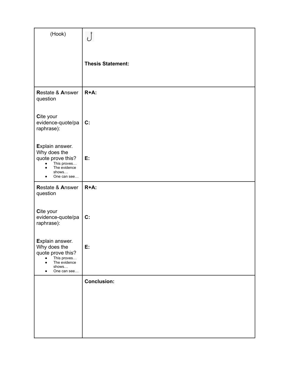 This is the topic sentence for your first example. This is the "restate & answer" section.