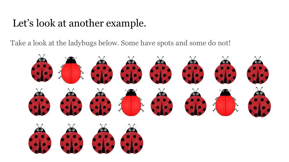 Write a fraction to represent the ratio of ladybugs without spots to the total number of ladybugs.