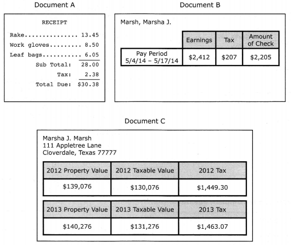According to Document C, how much more property tax did Ms. Marsh pay in 2013 than 2012?