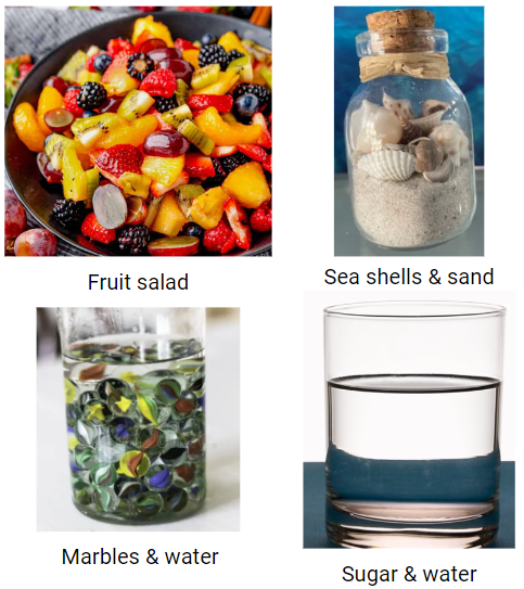 Which of the mixtures in the image above maintained all of the physical properties of their ingredients?