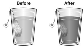 Guillermo was making a drink and placed a tea bag in a glass of water. After a few minutes, Guillermo noticed the water had turned light brown. Particles from the tea dissolved in the water and changed its color.