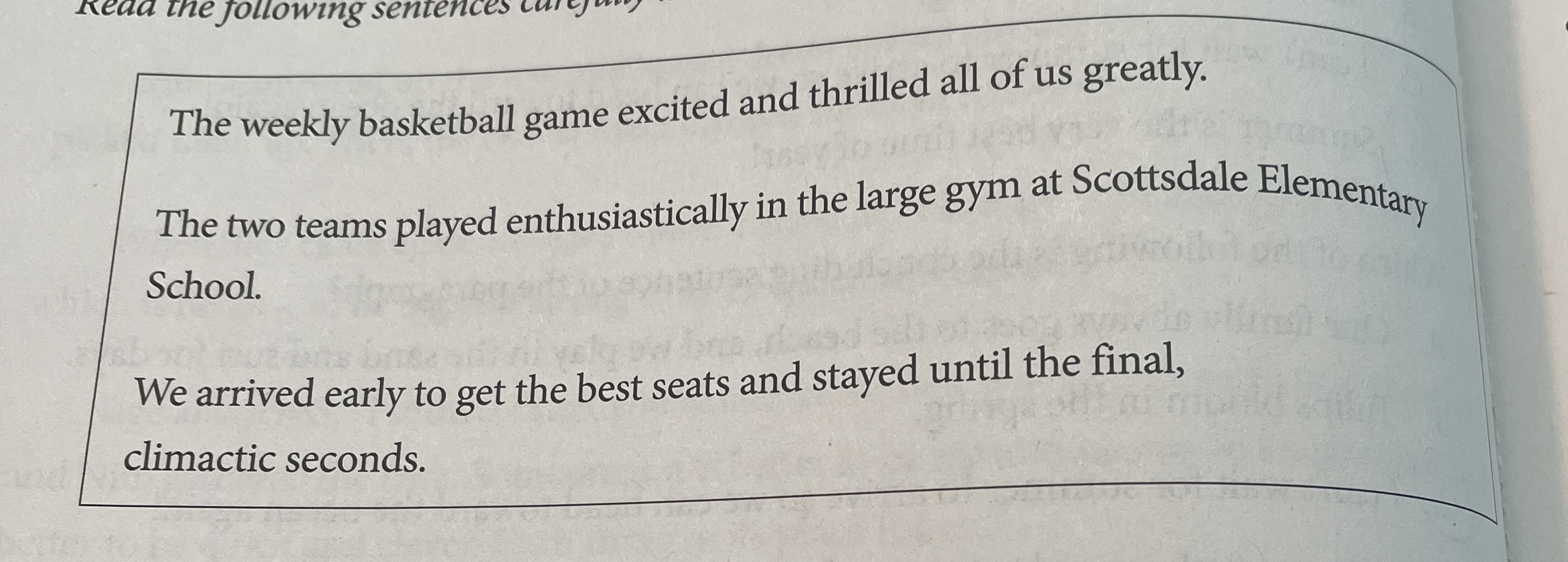 Put the following sentences in order as they should appear in a paragraph about making scrambled eggs: ___________________________________________ _______________________________________________________________________ _______________________________________________________ _______________________________________________________