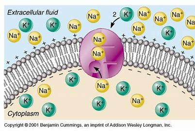 Exocytosis | arrow_right_alt | Process where Sodium (Na) is pumped out and Potassium (K) is pumped into the cell against the concentration gradient from low to high concentration using energy. |