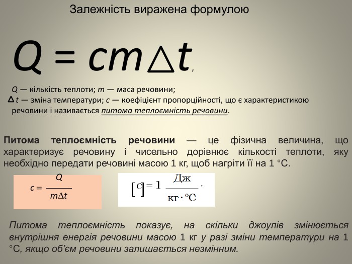Від яких фізичних величин залежить кількість теплоти, потрібна для нагрівання тіла?