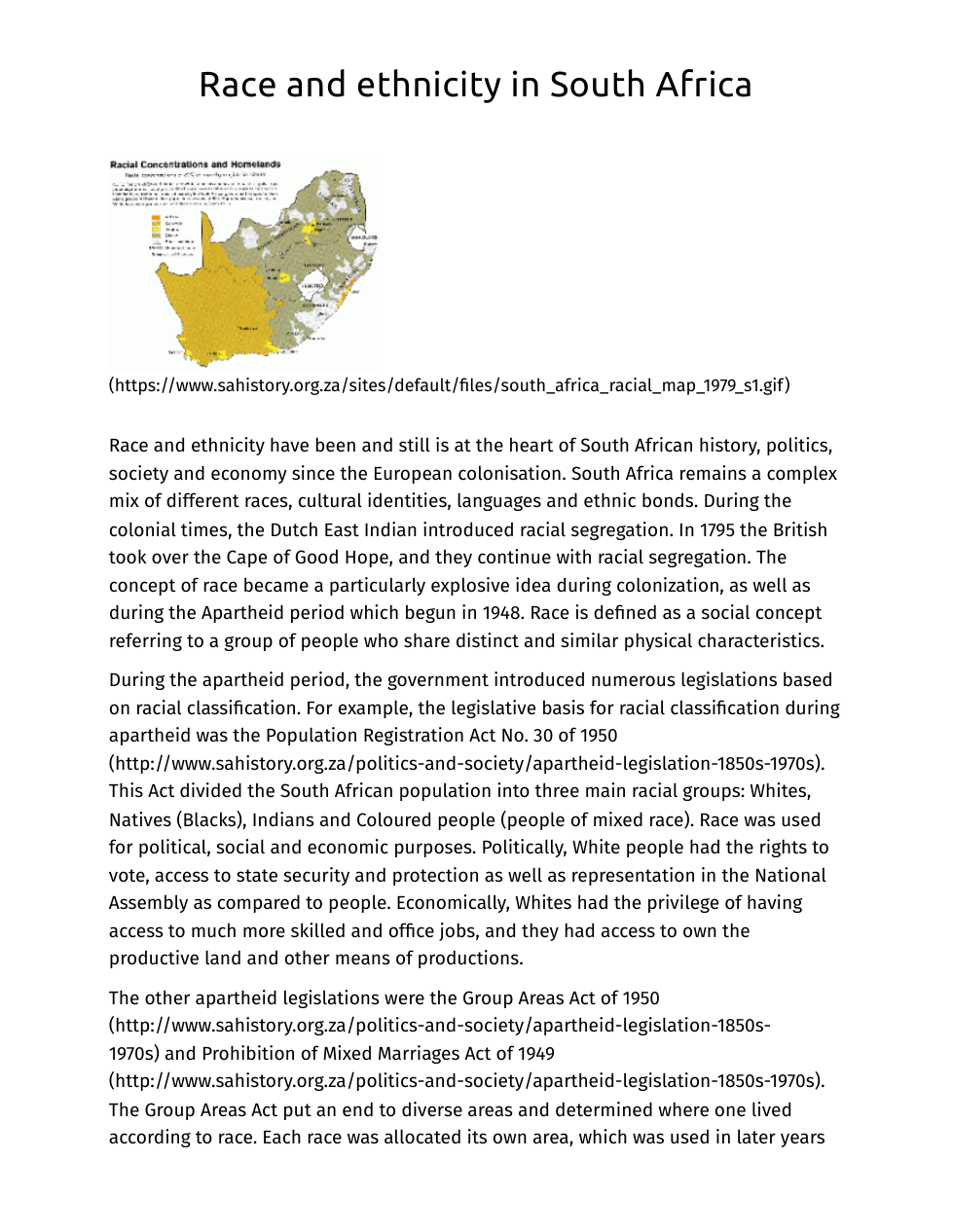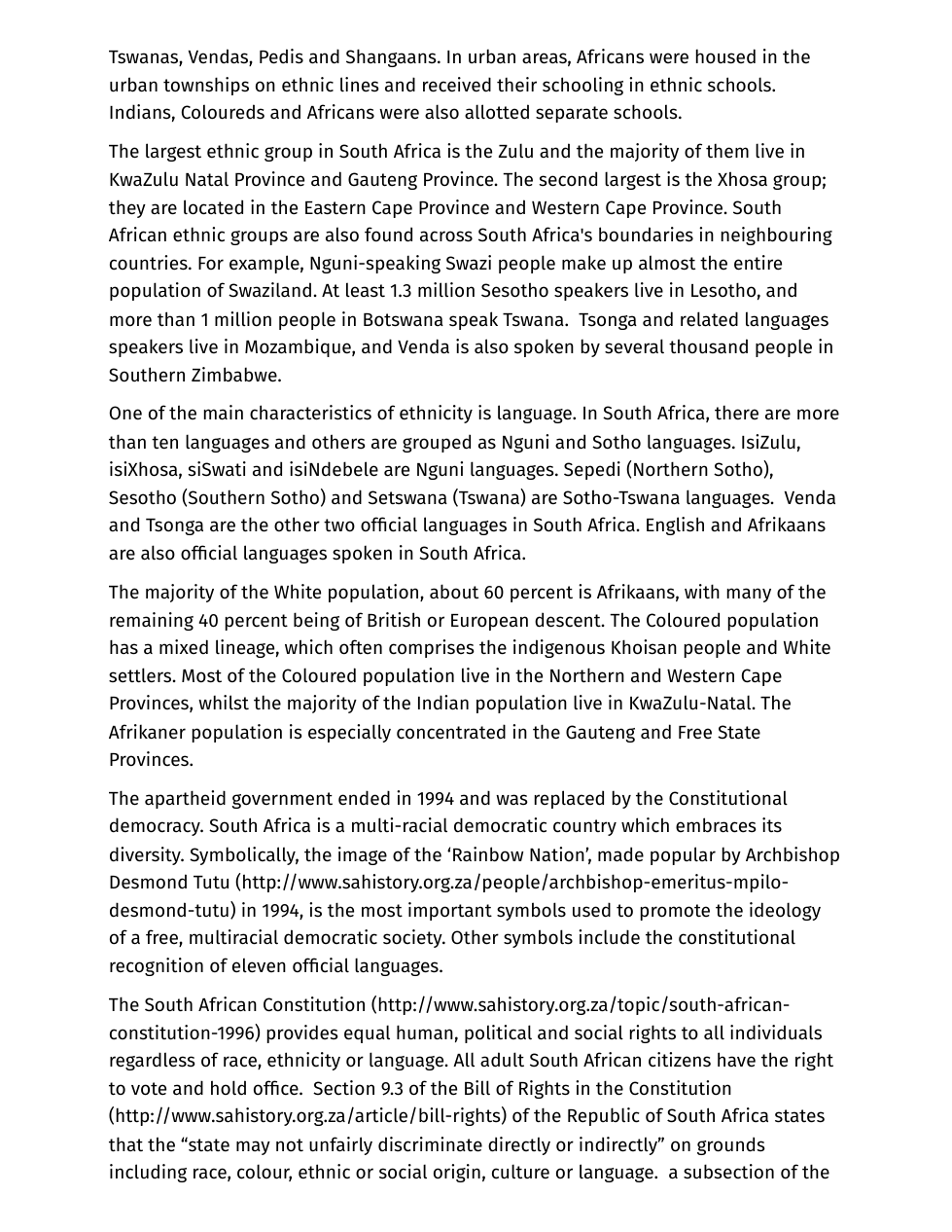 You have already watched the Edpuzzle with general information about South Africa. Next, read the article about race and ethicity in South Africa. Answer the questions that follow the article according to the instructions.