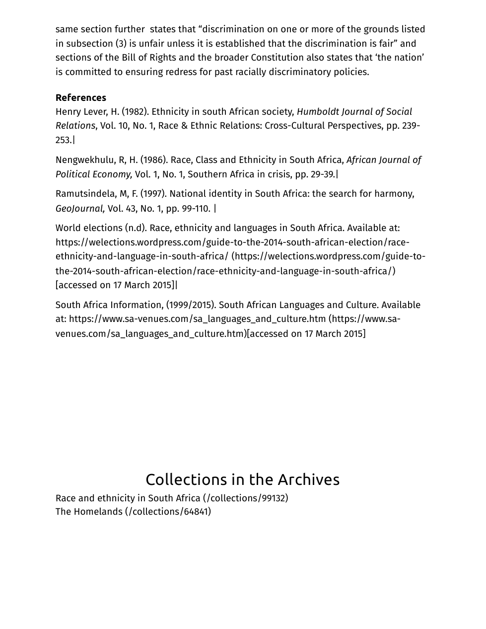 Go to the article above online and determine which tier of credibility it fits: https://www.sahistory.org.za/article/race-and-ethnicity-south-africa.