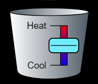 To heat the particles move the slider to heat. To cool the particles move the slider to cool.