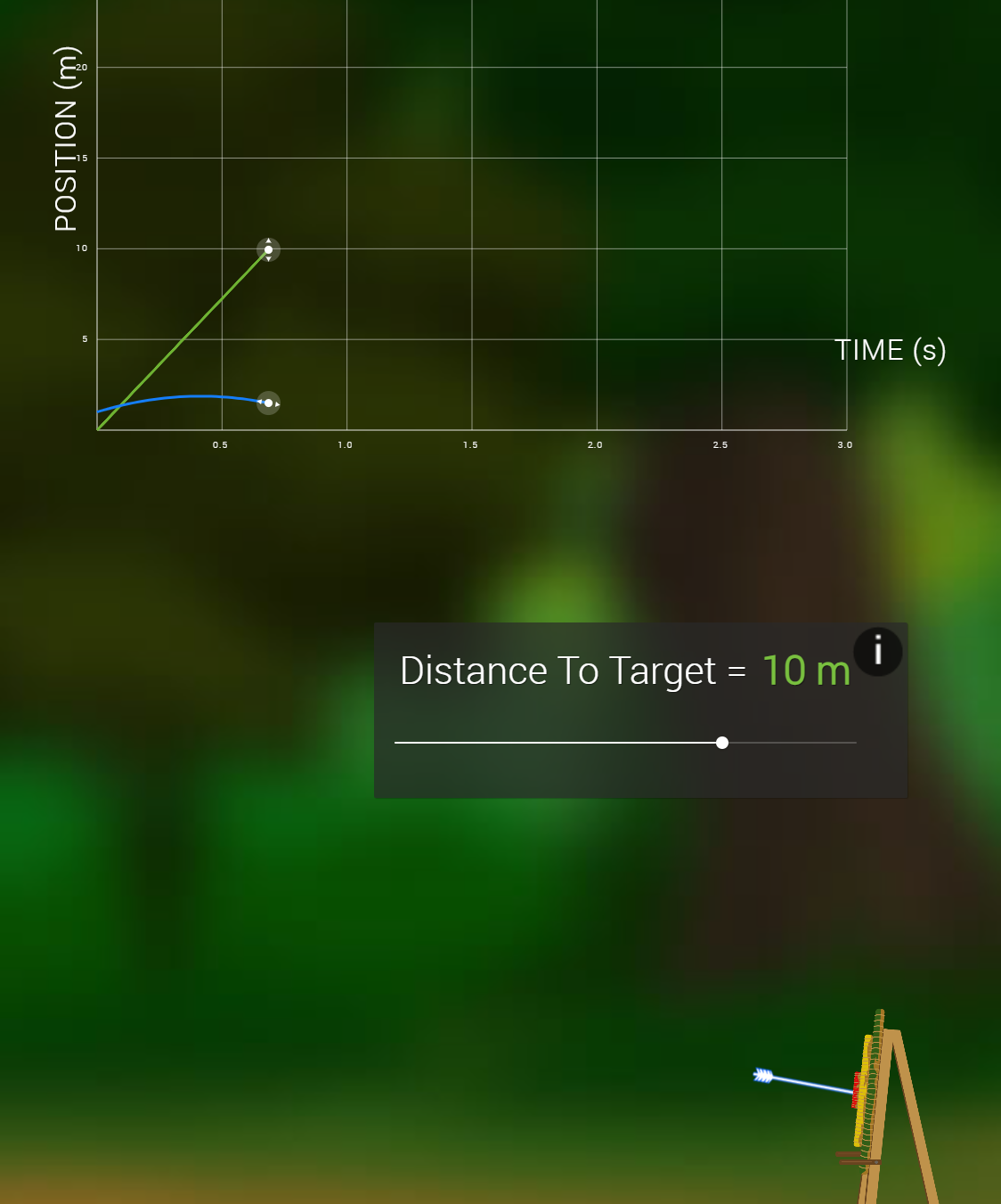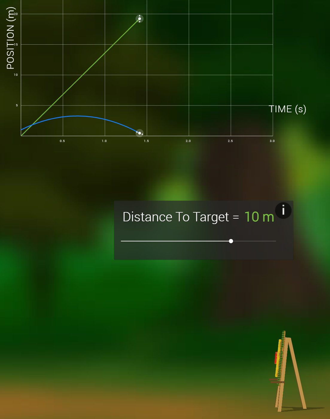 How can you tell by looking only at the graph that the arrow did not hit the target?