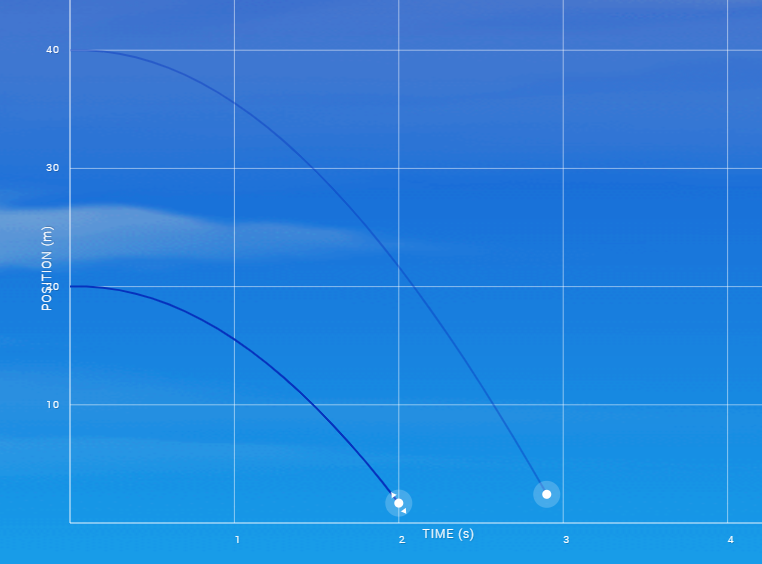 In the half second after the first second (from seconds 1 to 1.5), which diver falls farther?