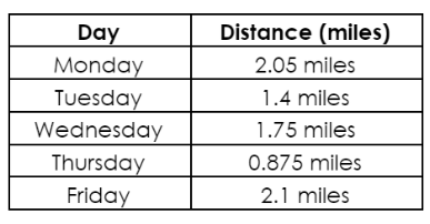 What was the difference between Debbie’s distance on Monday and Thursday? Show your work.