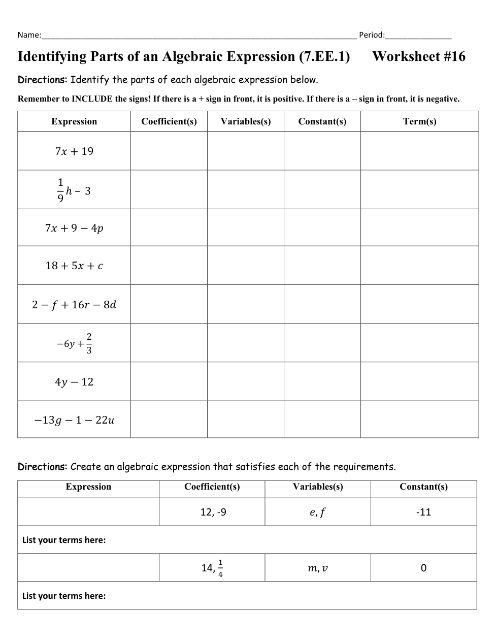 745LRIS WS#16 (Gray) Identifying Parts & Translating Expressions