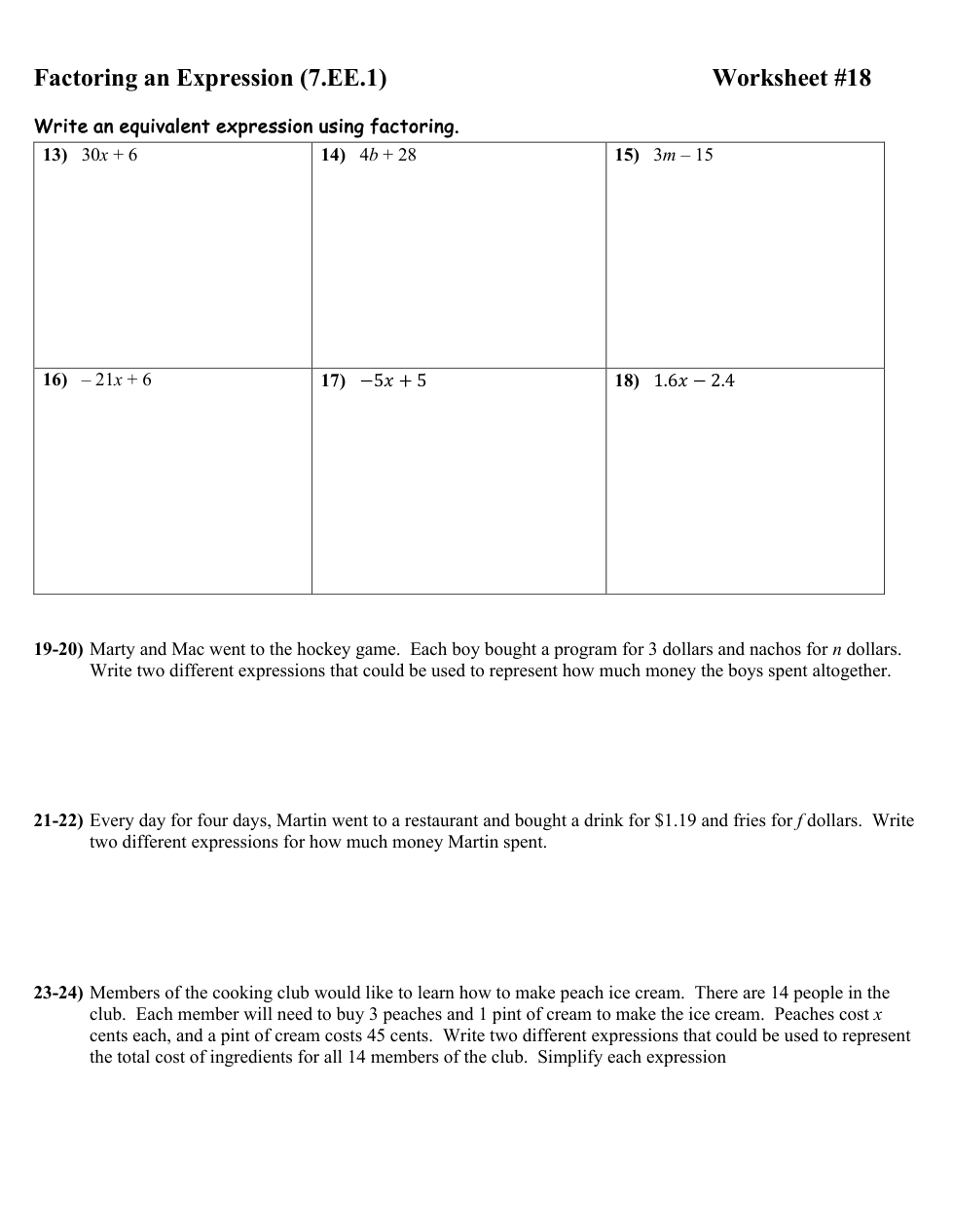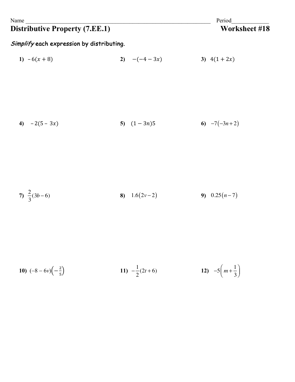 745LRIS WS#18 (Green) Distributive Property and Factoring