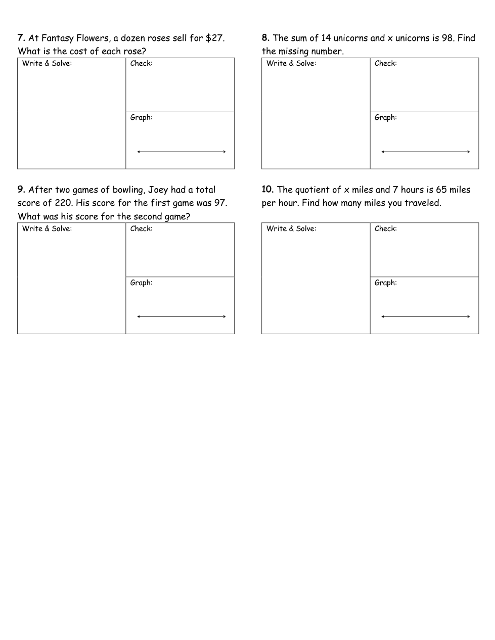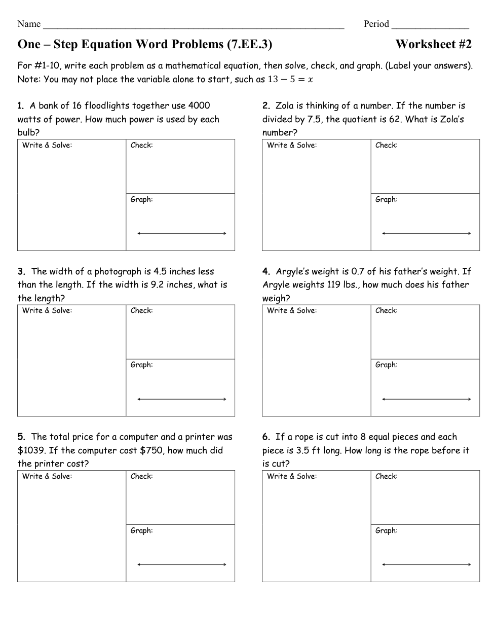 745LRIS WS#2 (Yellow) One-Step Equation Story Problems