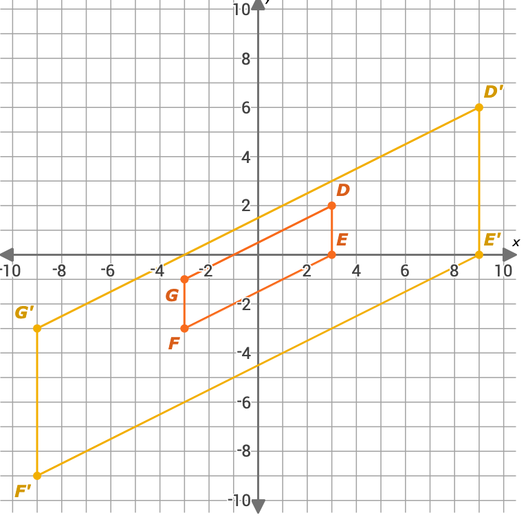 Parallelogram DEFG was dilated with the origin as the center of dilation to create D'E'F'G'