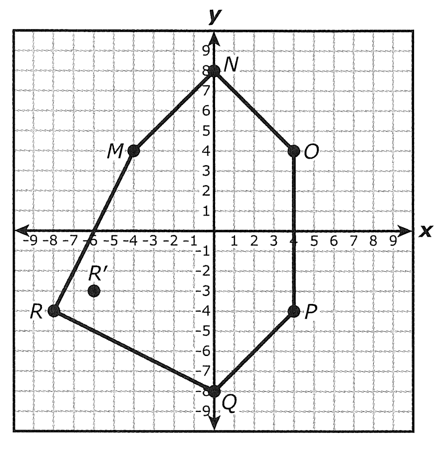 Hexagon MNOPQR is dilated with origin as the center of dilation. R' the image of R after the dilation has coordinates R' (-6, -3).