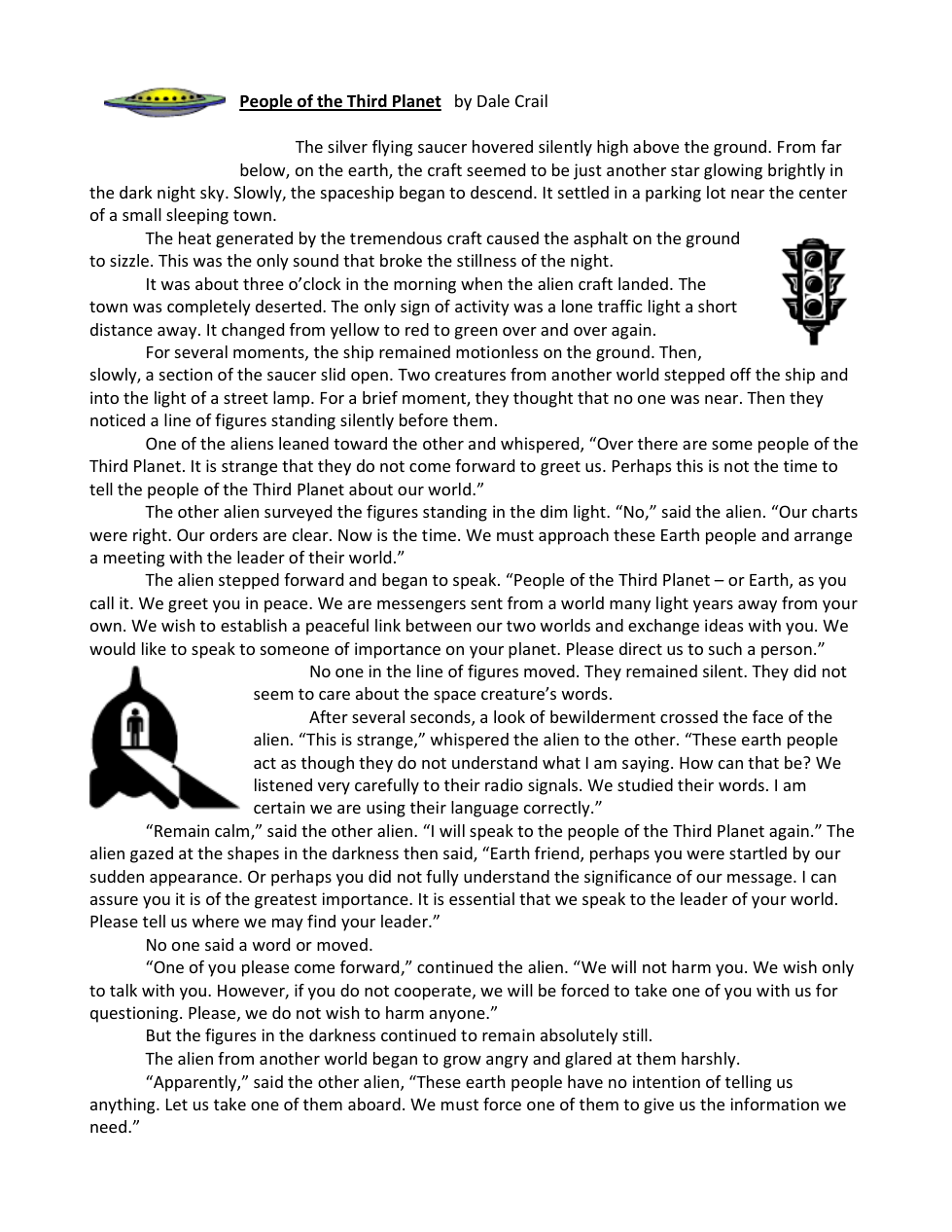 Telling About The Story.3. The aliens thought that the people of the Third Planet were strange because they–