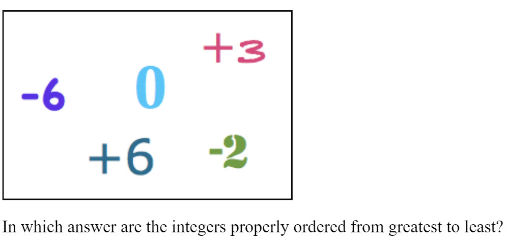 Which of the following examples ONLY uses positive integers?