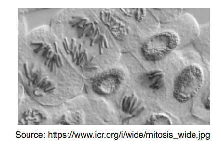 A student used a microscope to examine some cells. He observed strands located in the nuclei of these cells.