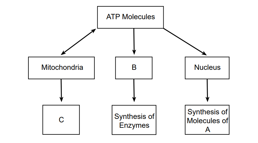 The diagram shows how ATP is used by some cell structures to perform various functions.