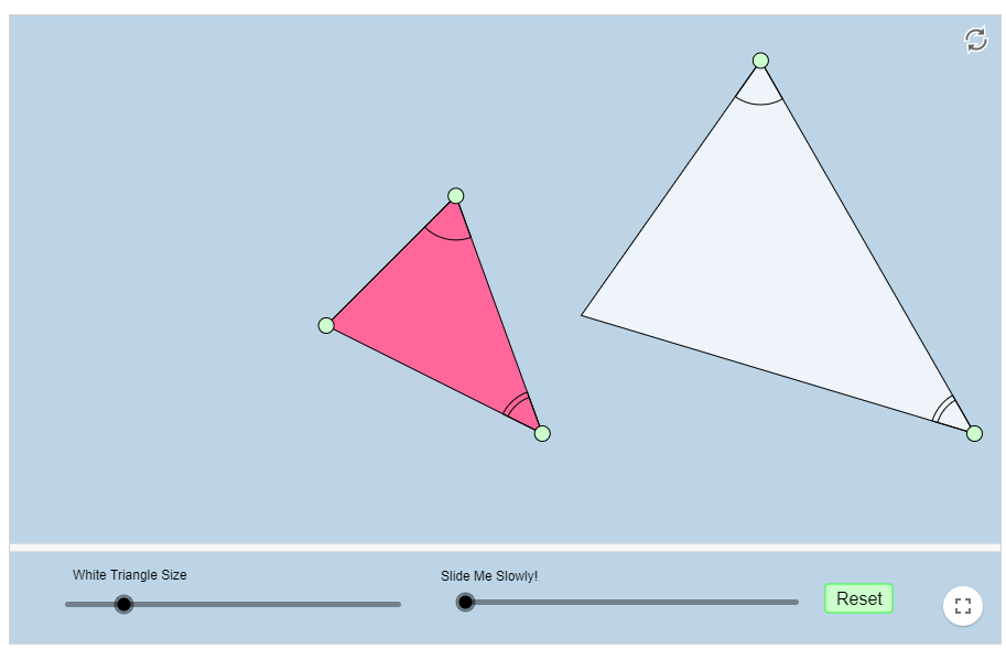 Use the first slider to make the white triangle smaller than the pink triangle.