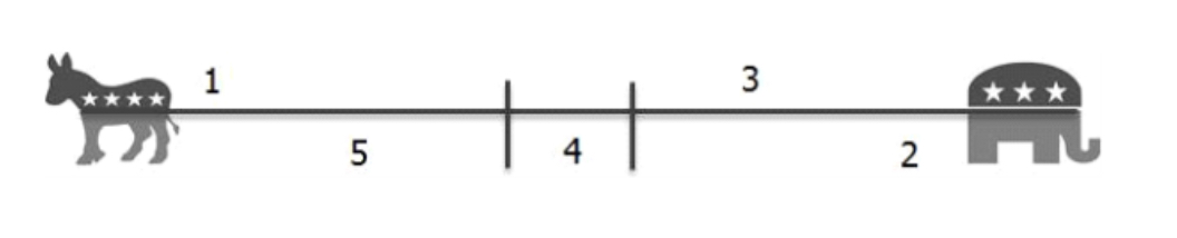Where along the political spectrum do both political parties try to win votes in the general election?
