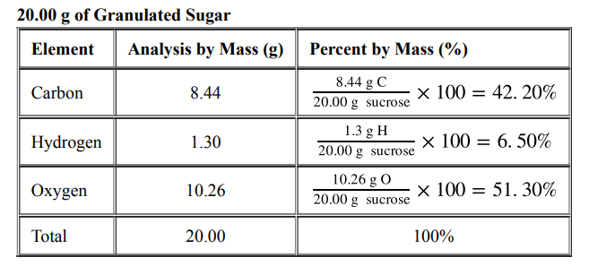 Consider the table below. In a sample of 100 g of sucrose, what would be the expected mass of hydrogen?