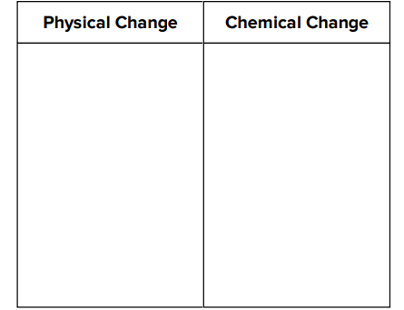 Sort the following words- Which represent physical changes and which represent chemical changes?