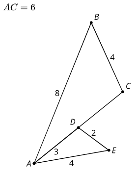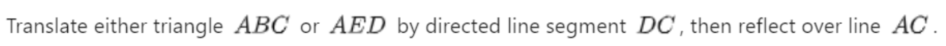 Select all sequences of transformations that would show that triangles ABC and AED are similar. The length of AC is 6 units.