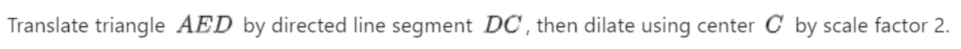 Similarity transformation - What transformations (translation, reflection, rotation) would you use to move one similar shape onto the other. A similarity transformation ends with a dilation by a scale factor to resize one shape to the other.