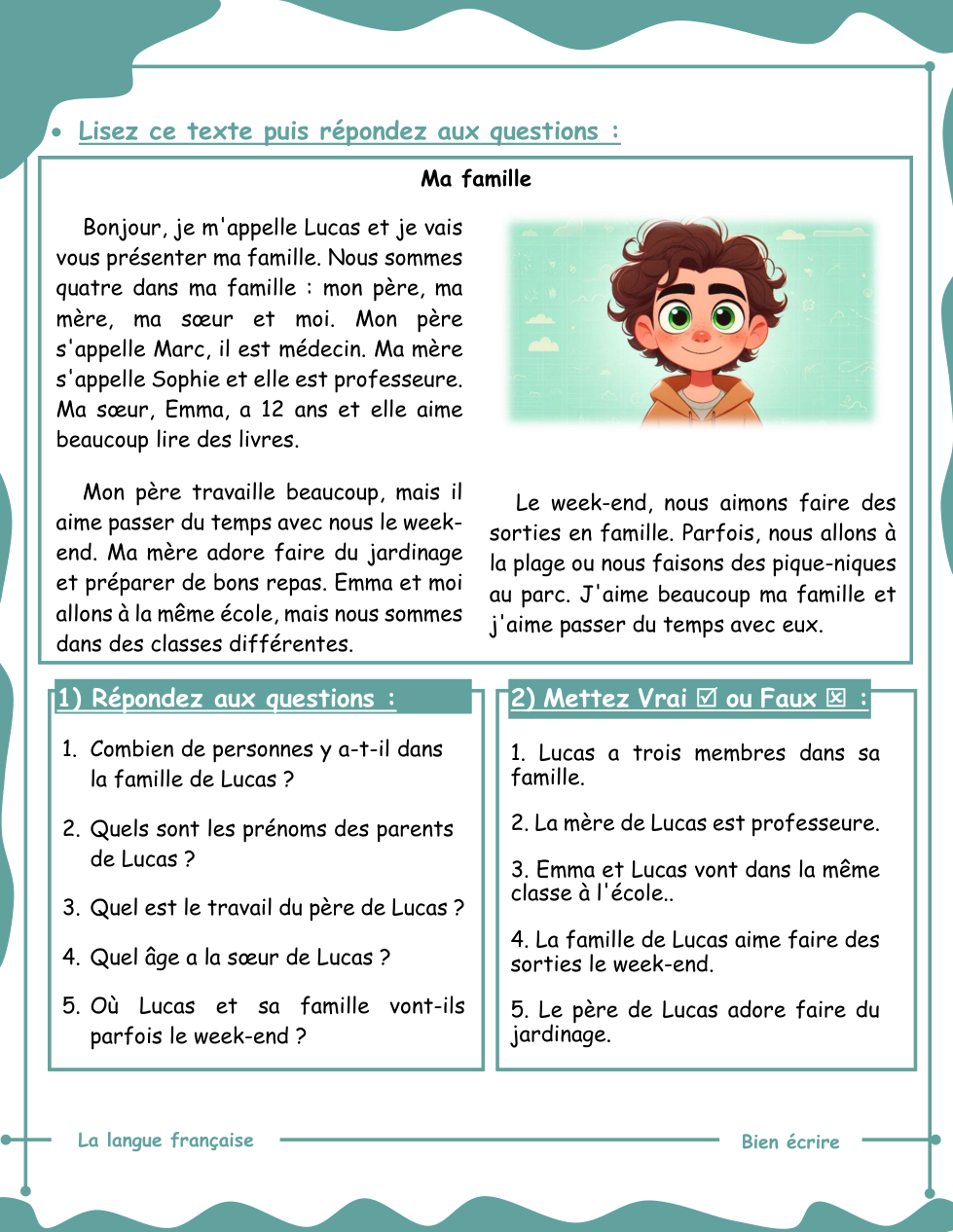Où Lucas et sa famille vont-ils parfois le weekend?