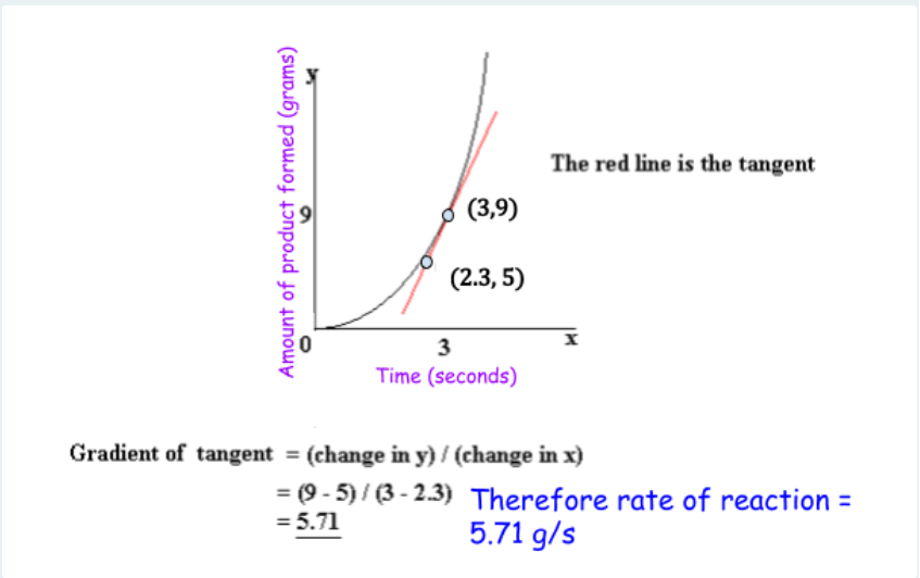 Step 2: calculate the _______ of the tangent using change in _______ (g) / change in _______