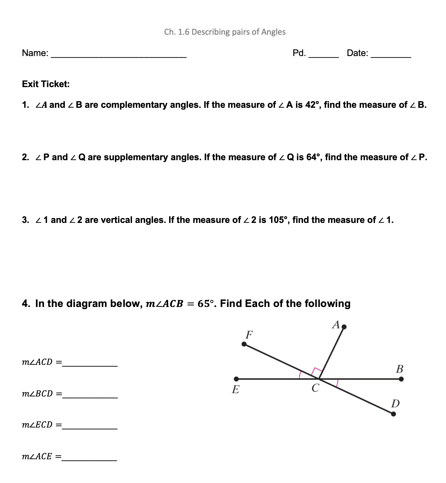 Exit Ticket: Describing Pairs of Angles