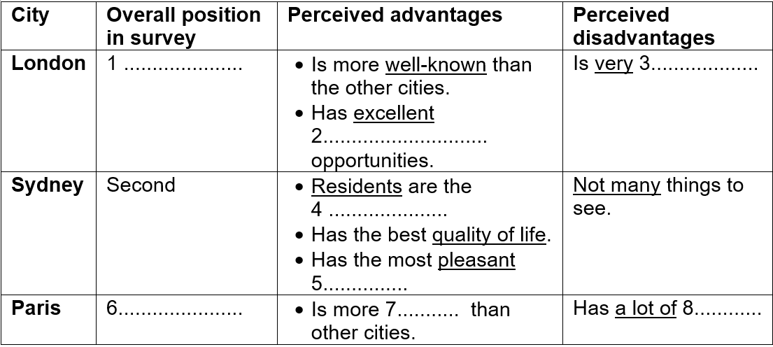 U1.1: Great places to be - Reading 1 - Table Completion [WB]