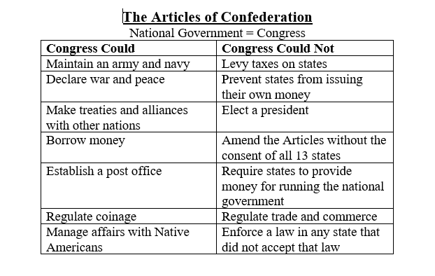 Do you think the writers of the Articles of Confederation wanted a strong or a weak national government based on this chart?