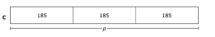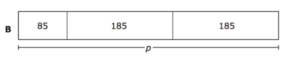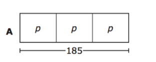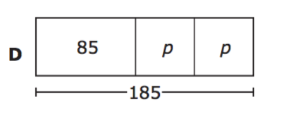 Sabra read a total of 185 in three days. -On the first day, she read 85 pages. -On the second and third days, she read the same number of pages. Which diagram shows a way to fine p, the number of pages Sabra read on the third day?