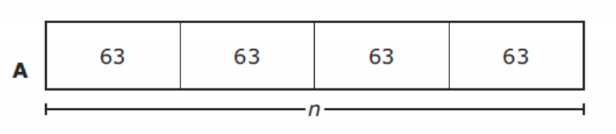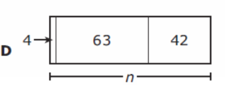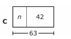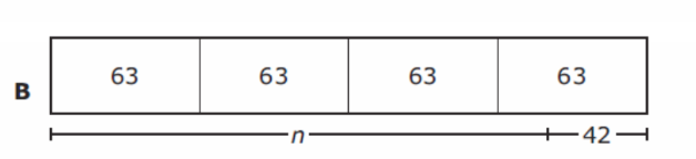 Madeline has 4 rolls of tape. Each roll contains 63 inches of tape. Madeline used 42 inches of tape for a project. Which diagram shows a way to fine n, the number of inches of tape that Madeline has left?