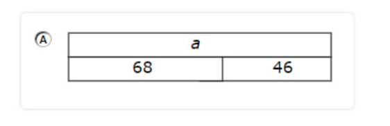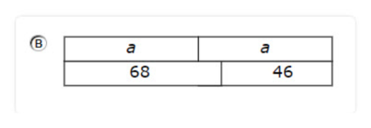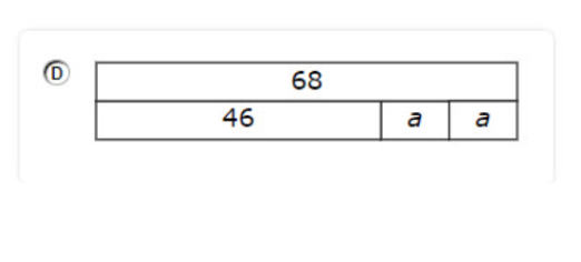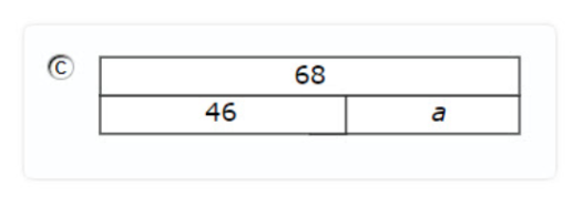 Duncan and Priscilla buy 68 apples. They use 46 apples to make pies for a bake sale. They split the remaining apples evenly between the two of them. Which strip diagram represents the number of apples, a, that Duncan and Priscilla each have?