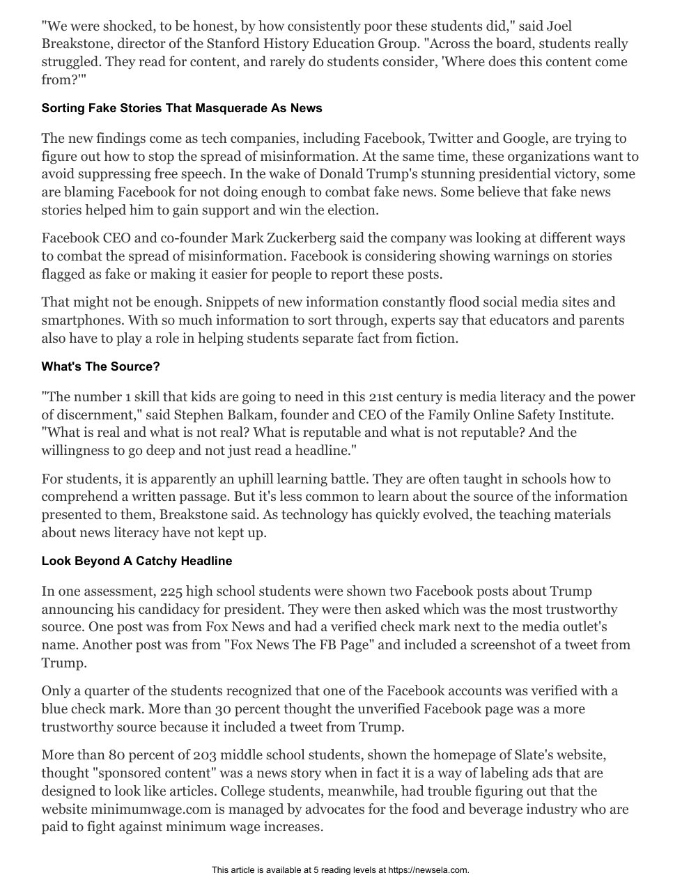 - With so much information to sort through, experts say that educators and parents also have to play a role in helping students separate fact from fiction.