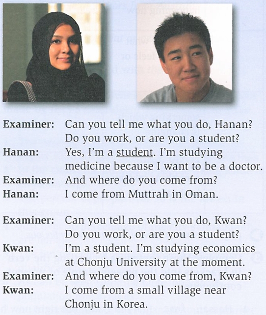 Work alone. Write your own answers to the Examiner’s questions in Exercise 1. Underline the words which you should stress.