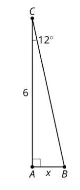 Andre and Mai are discussing how to solve for side 𝐴𝐵. Andre thinks he can use the equation tan(12) = 𝑥/6 to solve for 𝐴𝐵. Mai thinks she can use the equation tan(78) = 6/𝑥 to solve for 𝐴𝐵.