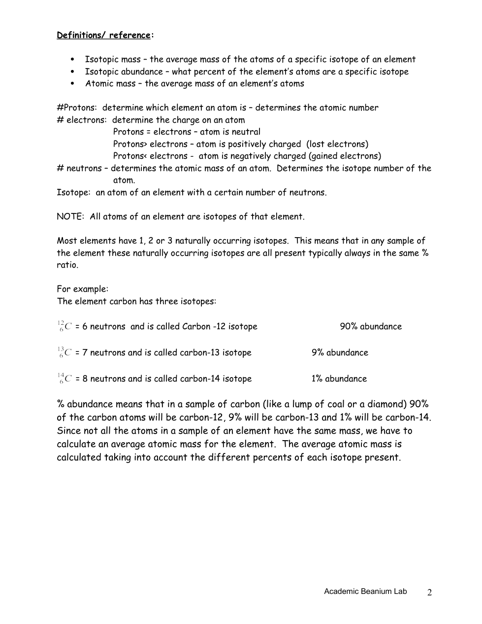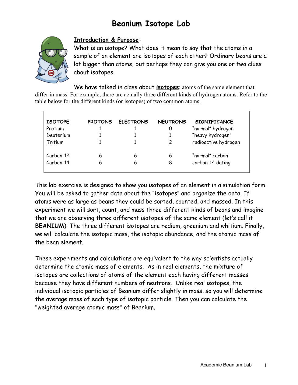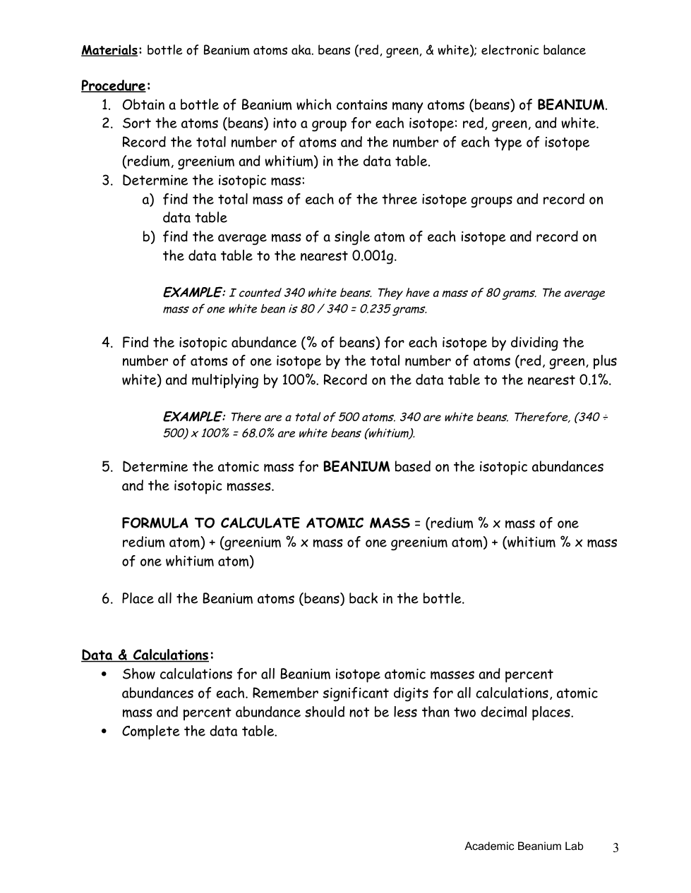 a) Explain any differences between the atomic mass of your BEANIUM sample and that of a different lab group.