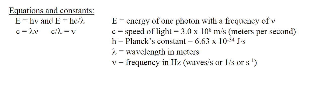 Calculate the energy and frequency of red light having a wavelength of 6.80 x 10-5 cm.