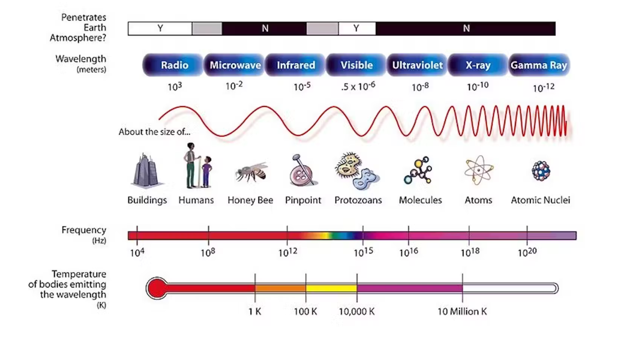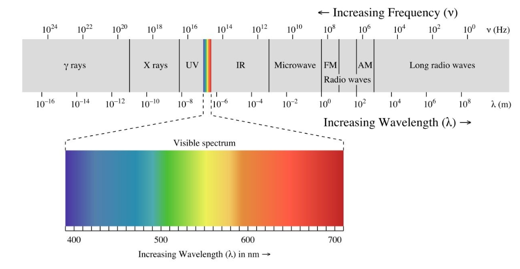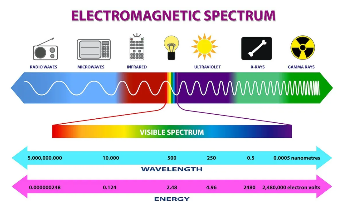 A photon of light has a wavelength of 0.050 cm. Calculate its energy. Identify the type of electromagnetic radiation.