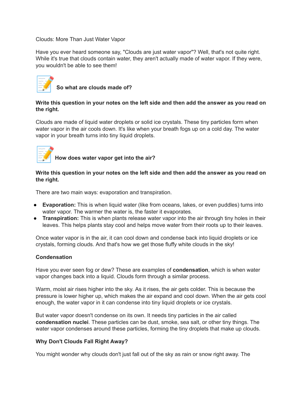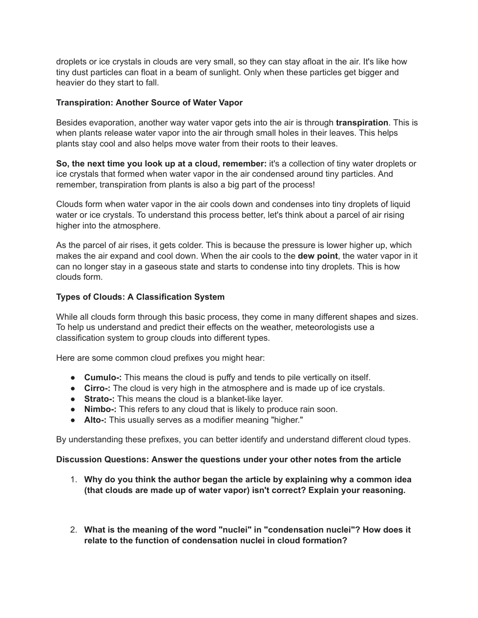 Why do you think the author began the article by explaining why a common idea (that clouds are made up of water vapor) isn't correct? Explain your reasoning.