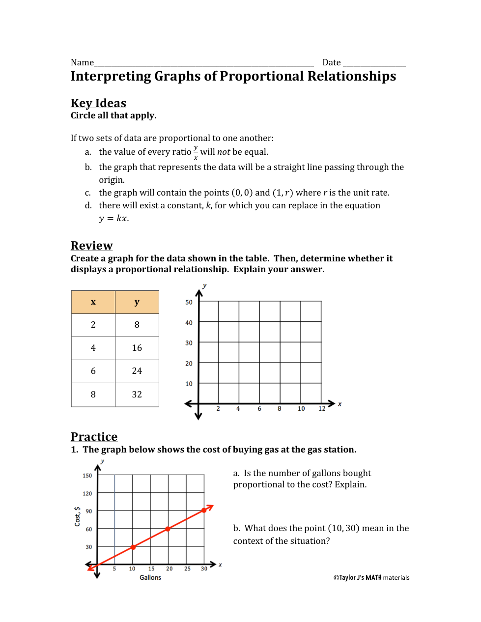 The number of gallons bought (is or is not) _______ proportional to the cost. The constant is _______.