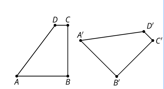 Quadrilateral ABCD is congruent to quadrilateral A'B'C'D'. Which description describes the sequence of rigid motions that takes A to A', B to B', C to C', and D to D'.
