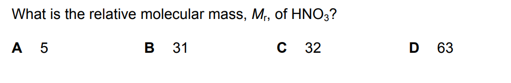 Calcium nitrate has the formula Ca(NO₃)₂. What is the relative formula mass, Mr, of calcium nitrate?
