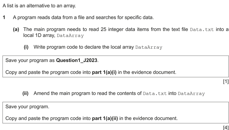 You find a blank evidence file and accompanying Data.txt file in Teams under Classwork>Exam Revision section. You need to download and extract the ESQ_List zip file.