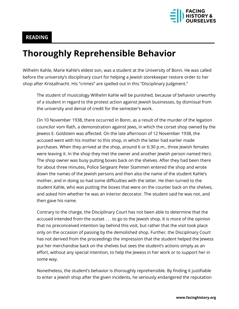 The disciplinary court’s report concludes with hope that Wilhelm Kahle will become a more “responsible” person. According to the court, what would make Kahle more responsible? What does it mean to you to be a responsible person?