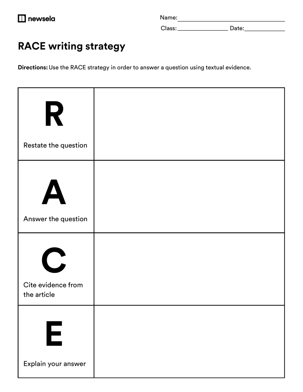 RACE writing strategy
